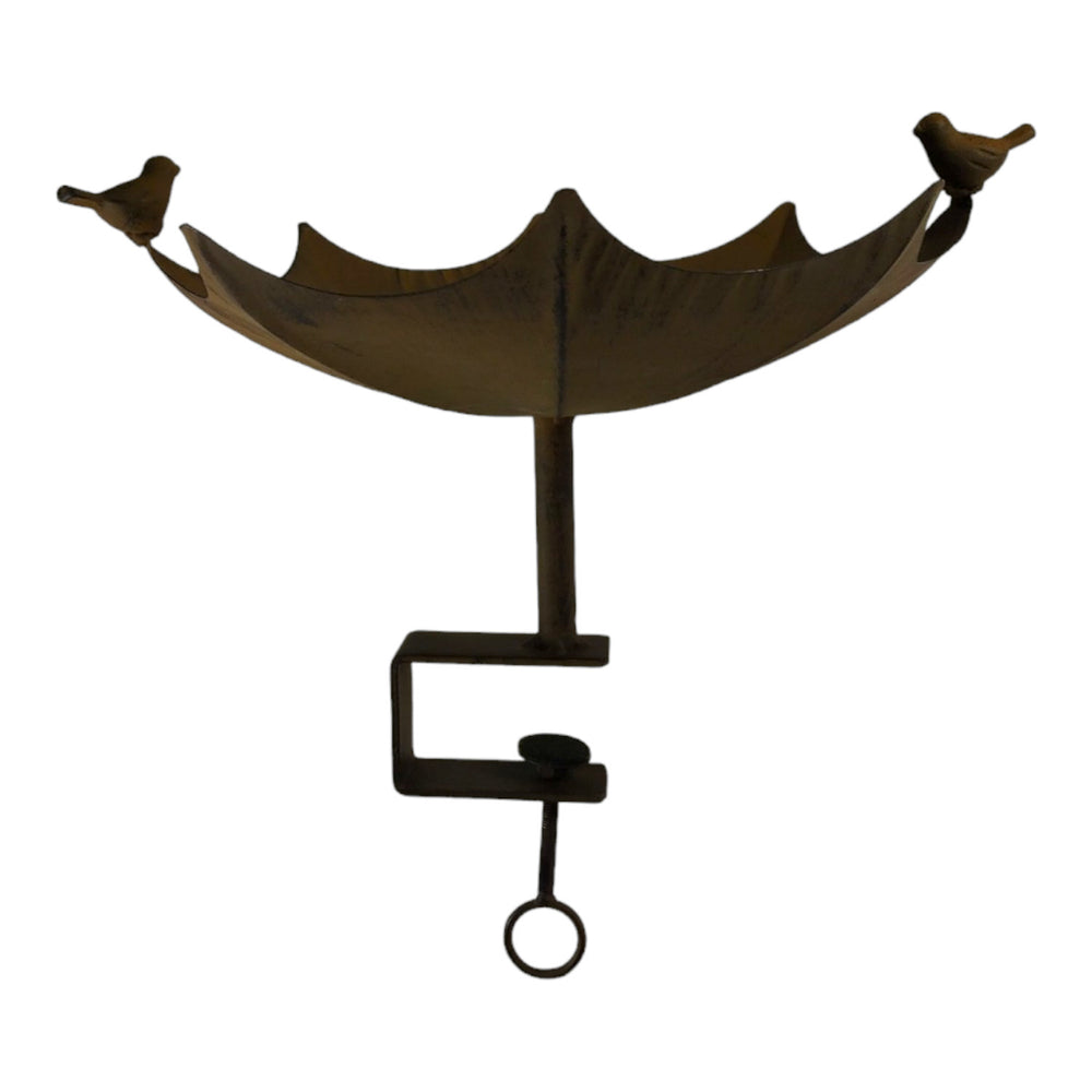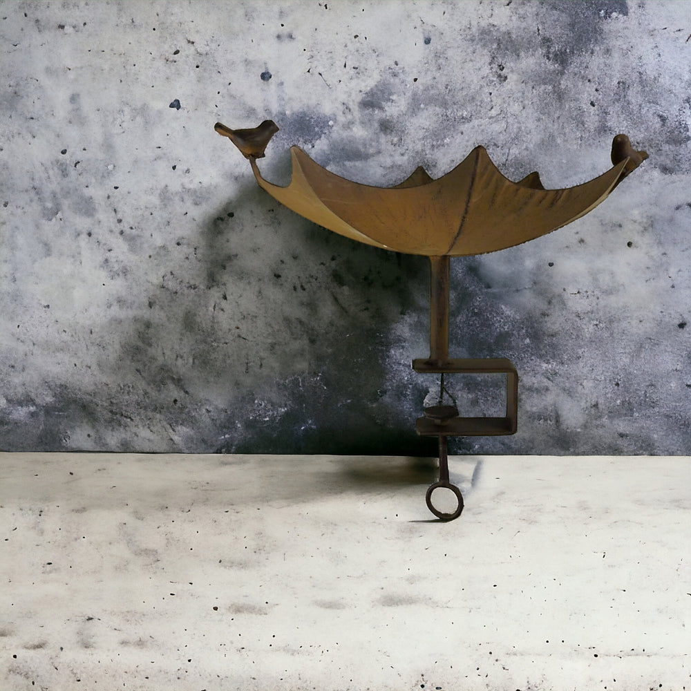 - Unsere Vogeltränke glänzt in eleganter Rostoptik und spielt mit dem Design eines umgedrehten Schirms - ein wahrer Hingucker! Aus winterfestem Metall gefertigt, trotzt sie eisigen Temperaturen. Mit einer soliden Tischklemme befestigt, bietet sie auf Balkon oder Terrasse ein stilvolles Wasserplateau für Ihre fliegenden Gäste.