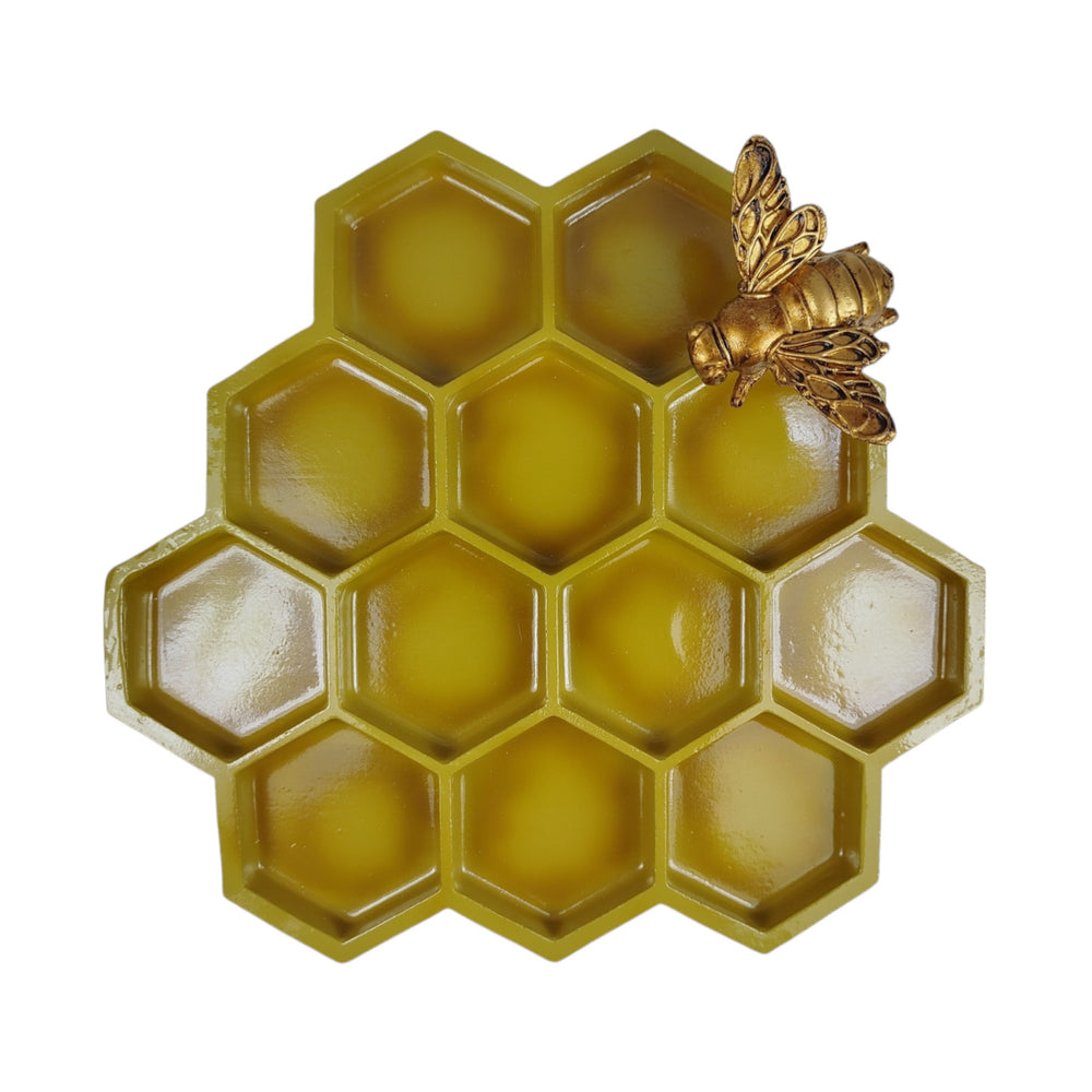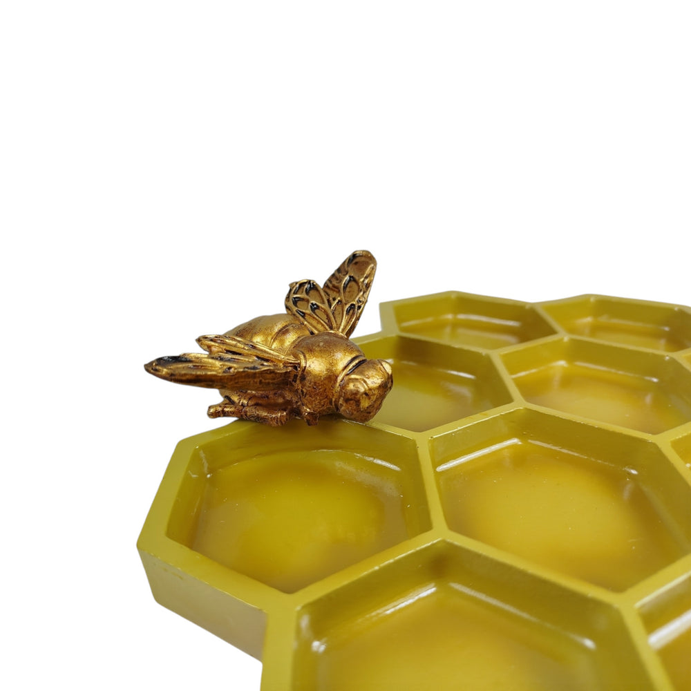 • 1x Vogelfutterstation im Bienenwaben Design aus Polystone in Gold.