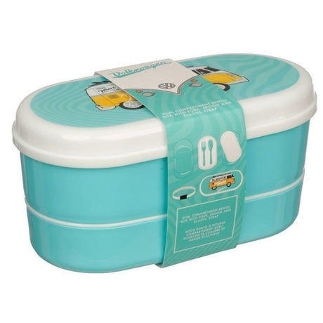 Wenn Sie nach einer einzigartigen Möglichkeit suchen, Ihre Mittagspause zu gestalten, dann werfen Sie einen Blick auf unsere Volkswagen VW T1 Bus Bento Box in Türkis. Das Produkt vereint nostalgisches Design mit moderner Funktionalität.