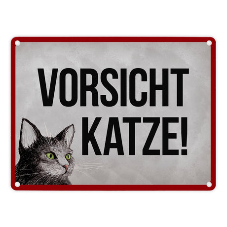 Vorsicht Katze Metallschild mit Katze Motiv