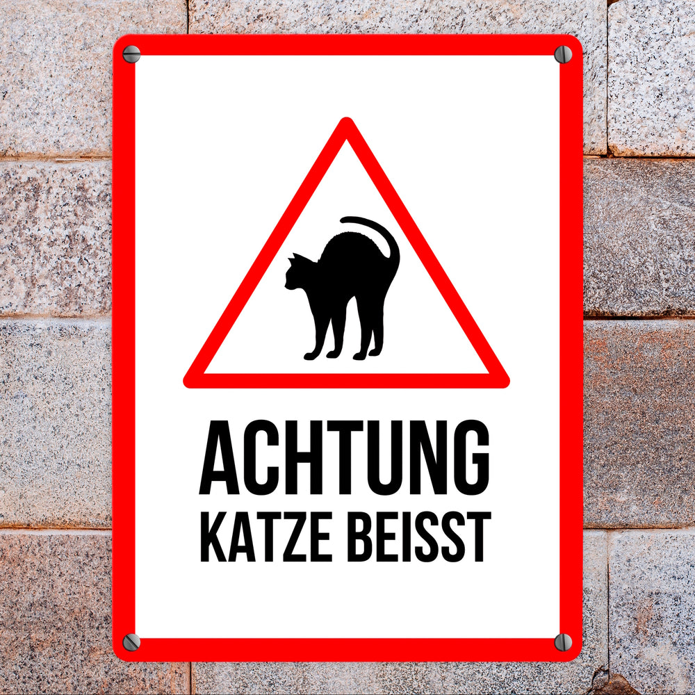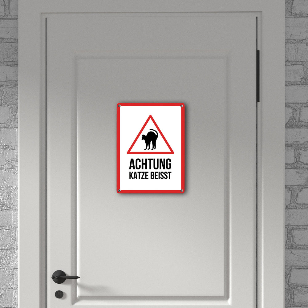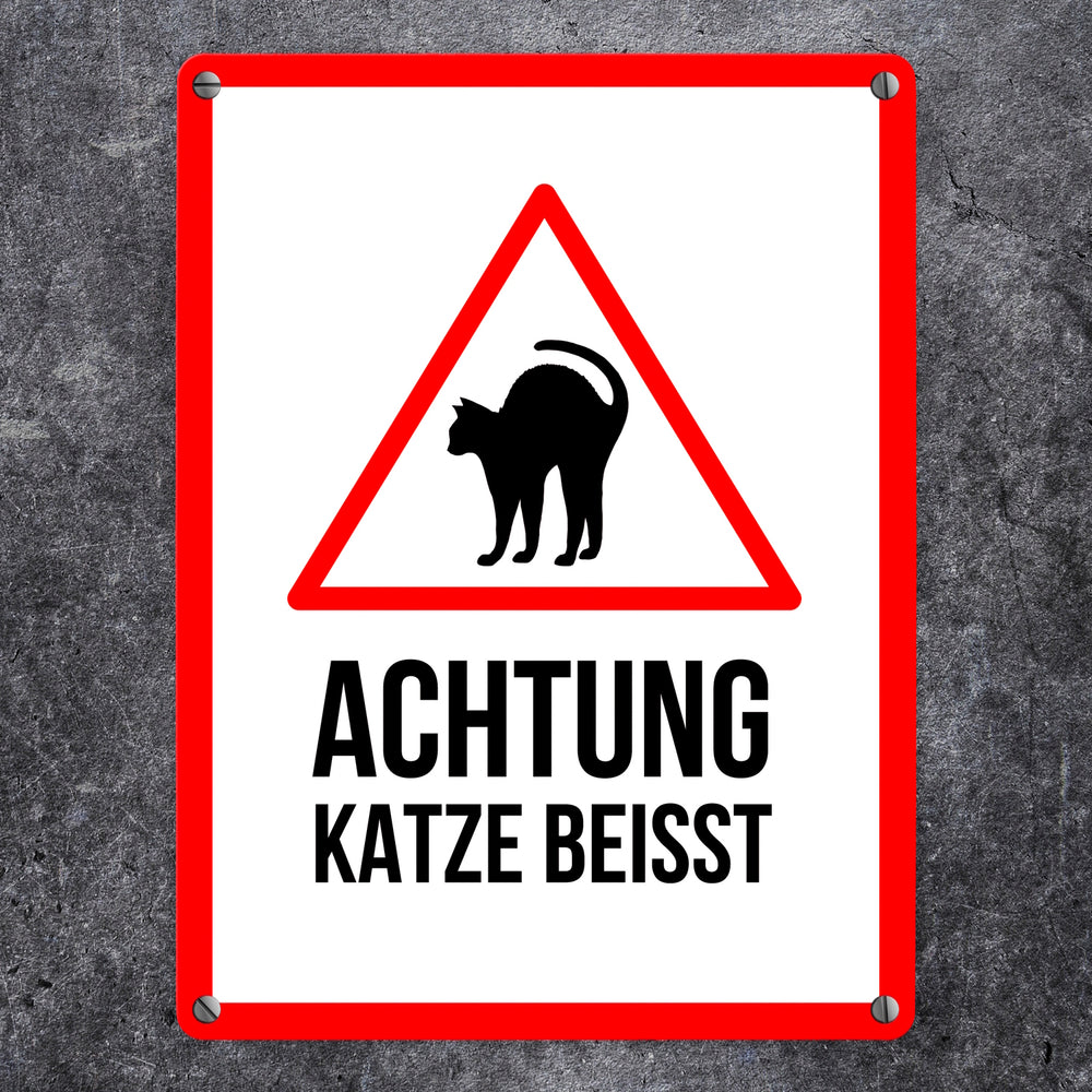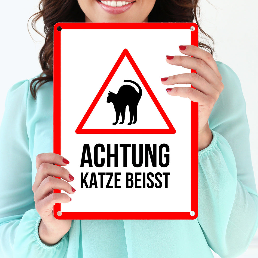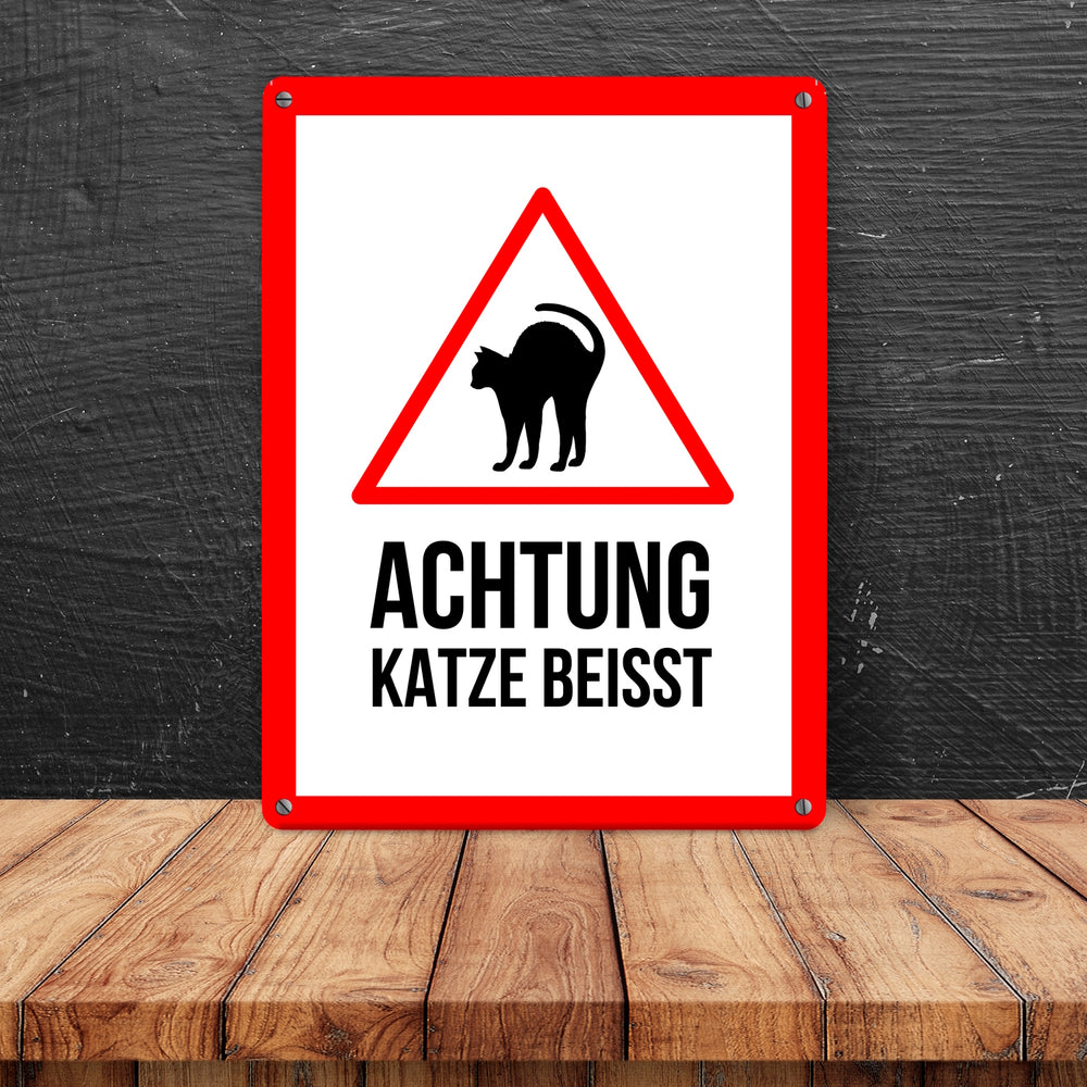 - 1x Achtung Katze beisst Metallschild mit Katzen Symbol in der gewählten Größe