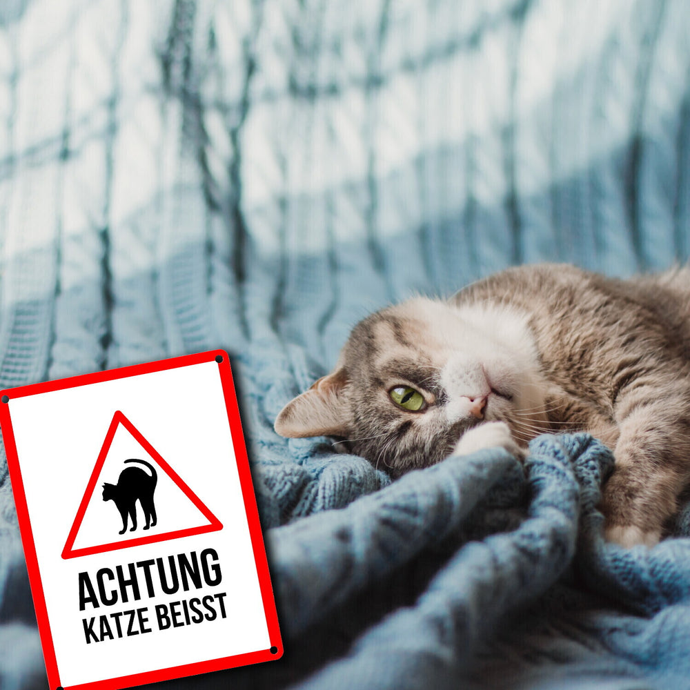 Achtung Katze beisst Metallschild mit Katzen Symbol - 15x20 cm ist auf Lager und wird versandt, sobald es wieder verfügbar ist