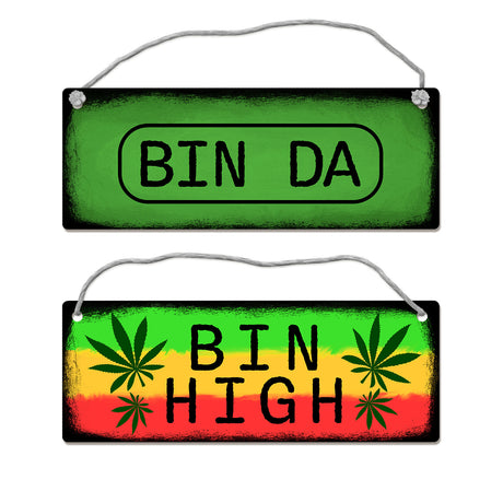 - Lieferumfang: 1x Bin High oder Bin da Wendeschild mit Marihuanablatt