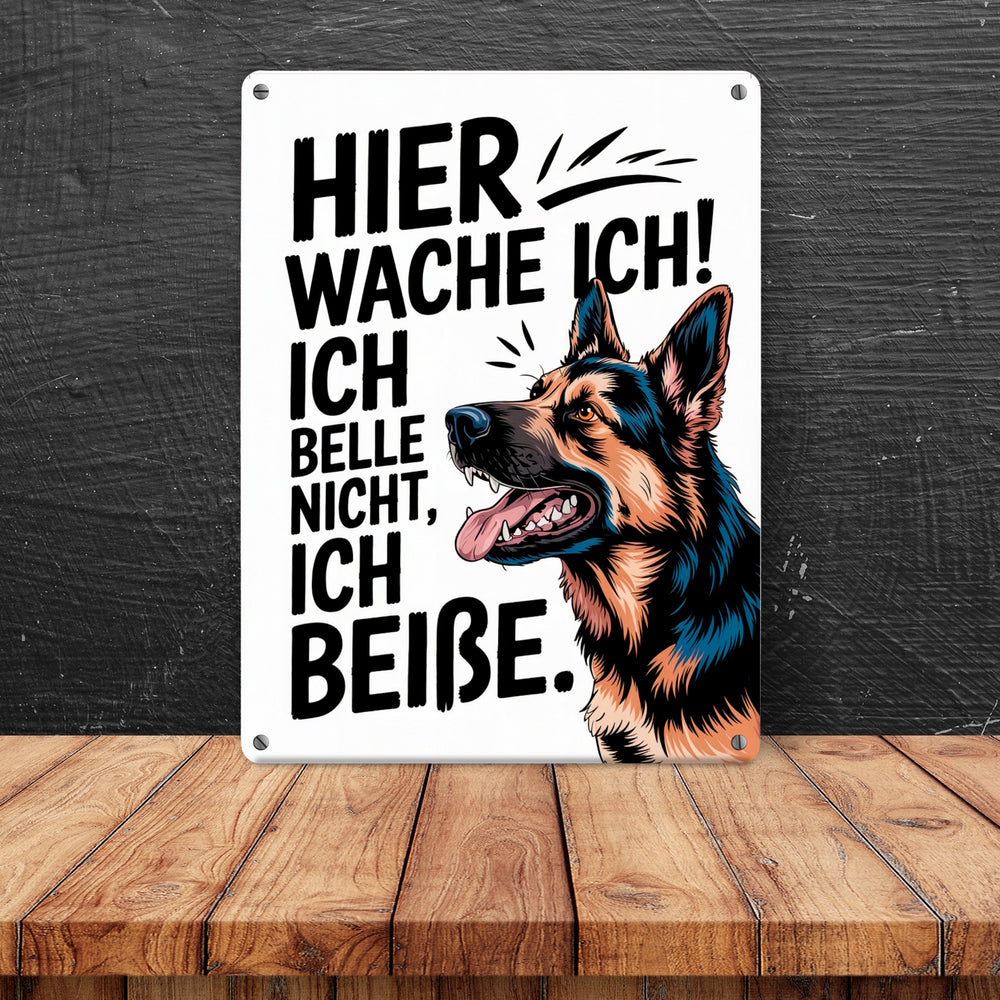 Deutscher Schäferhund ich belle nicht, ich beiße Metallschild in 15x20 cm Hier wache ich