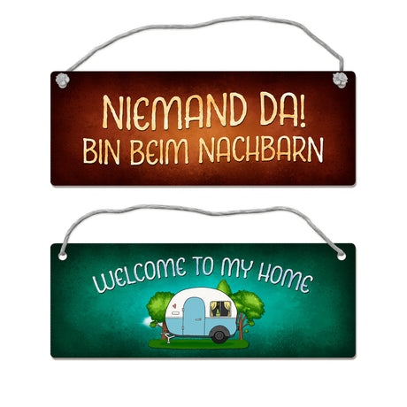 Welcome to my home oder bin beim Nachbarn Camping Wendeschild mit Kordel