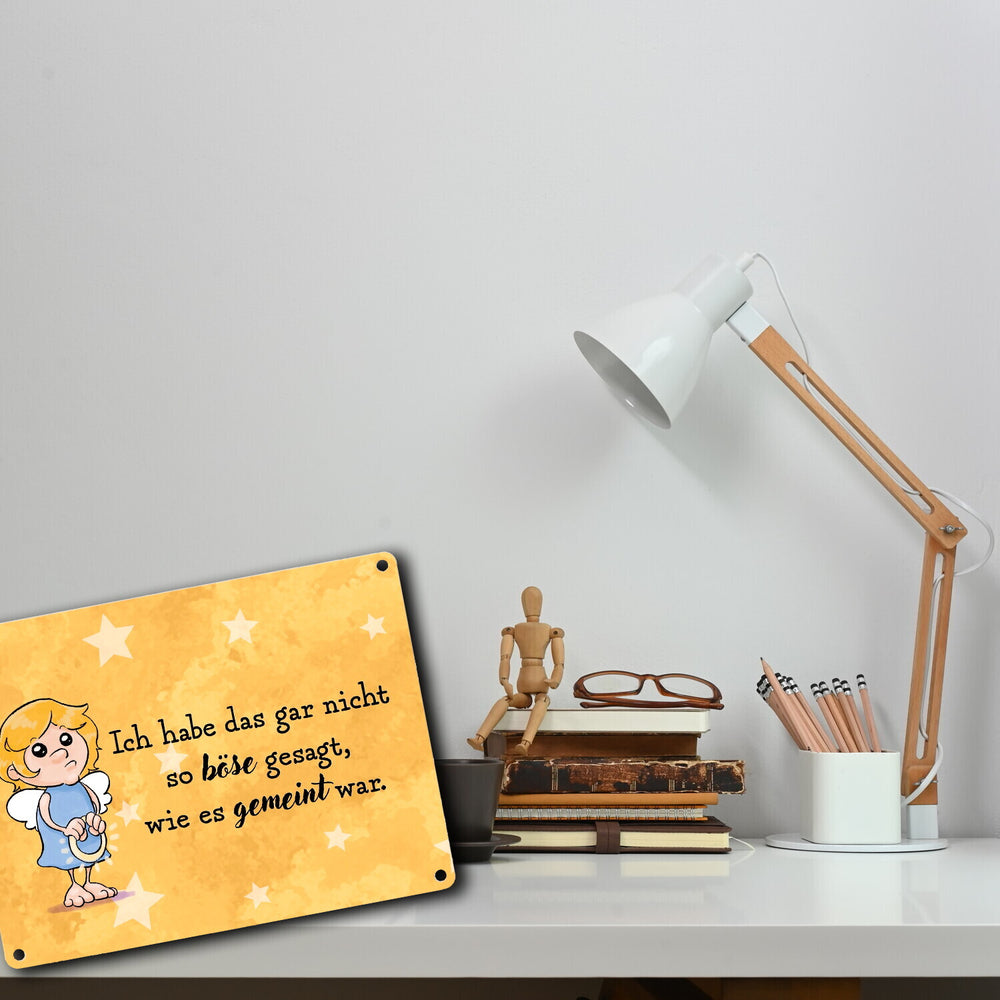 • 1x Engel Metallschild in 15x20 cm mit Spruch- Ich spreche Ironie mit Sarkasmus-Akzent in der gewählten Größe