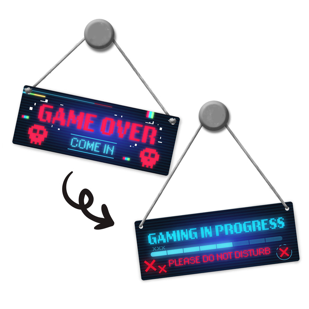 - Lieferumfang: 1x Gaming in progress oder Game Over Wendeschild im Pixel Look