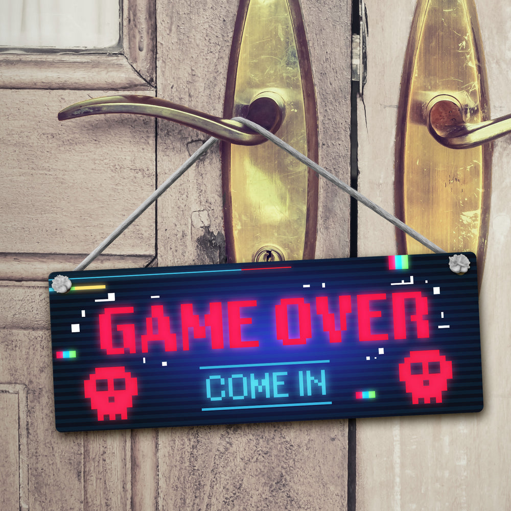 Start Game nicht stören oder Game Over komm rein Retro Türhänger für Zocker
