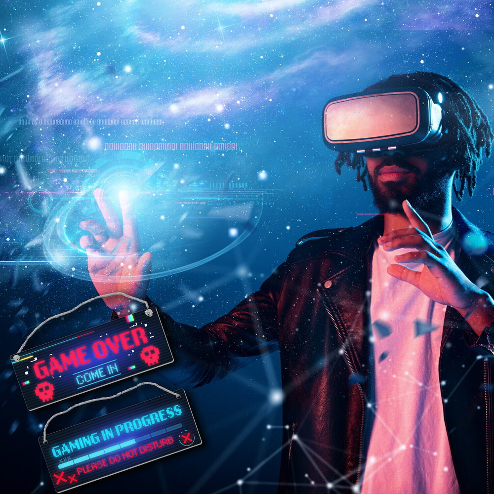 Gaming in progress oder Game Over Wendeschild im Pixel Look