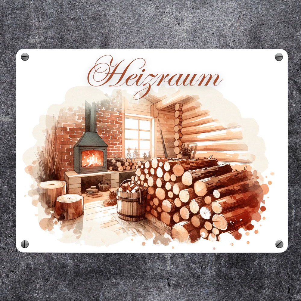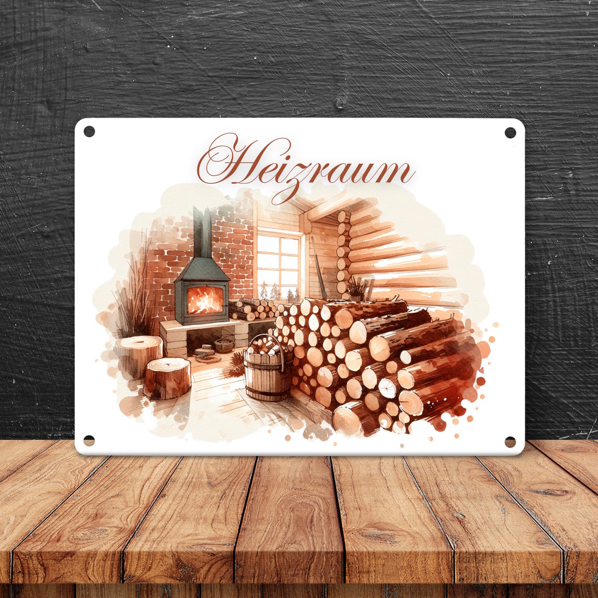 • 1x Heizraum Metallschild in 15x20 cm mit Spruch Heizraum in der gewählten Größe