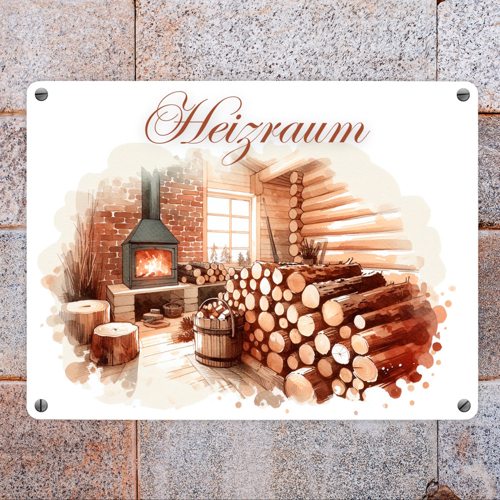 Heizraum Metallschild in 15x20 cm mit Spruch Heizraum