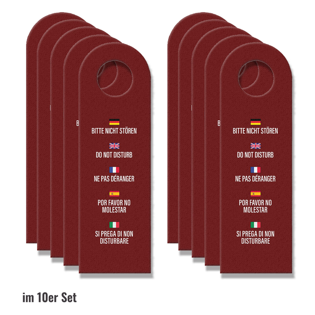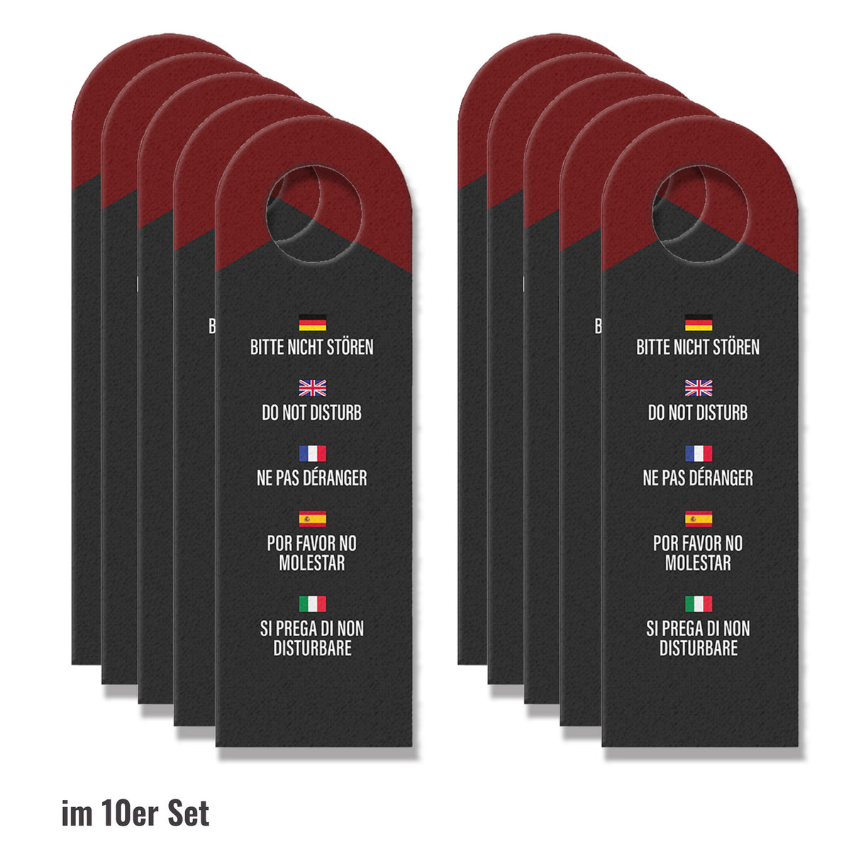 - 1x Hotel Türhänger Bitte nicht stören - Bitte Zimmer reinigen in verschiedenen Sprachen Dunkelrot und Dunkelgrün Deutsch Englisch Französisch Spanisch Italienisch Zimmerservice Zimmermädchen in der gewählten Setgröße