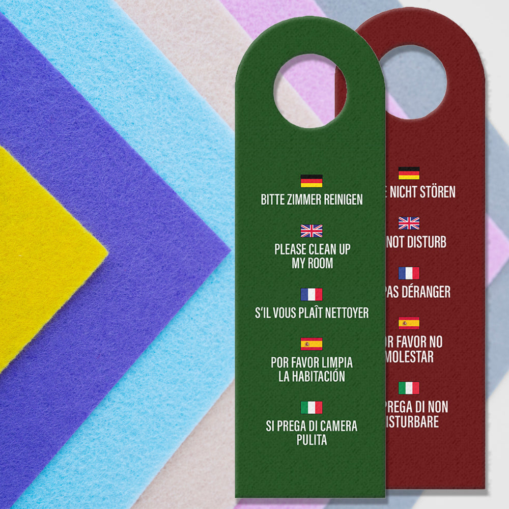 - Einzeln erhältlich oder als 3er- und 10er-Sparset. Aus hochwertigem Filz mit praktischem Loch für die Türklinke. Mit Sorgfalt in Handarbeit hergestellt in unserer Türhänger-Manufaktur in Deutschland.