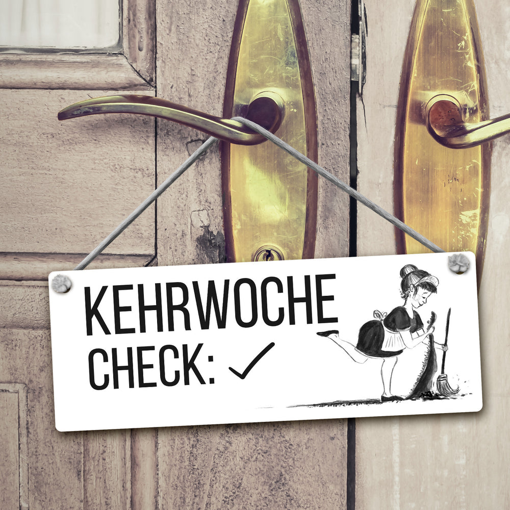 • Lieferumfang: 1x Kehrwoche ist erledigt Wendeschild mit Kordel Wendeschild
