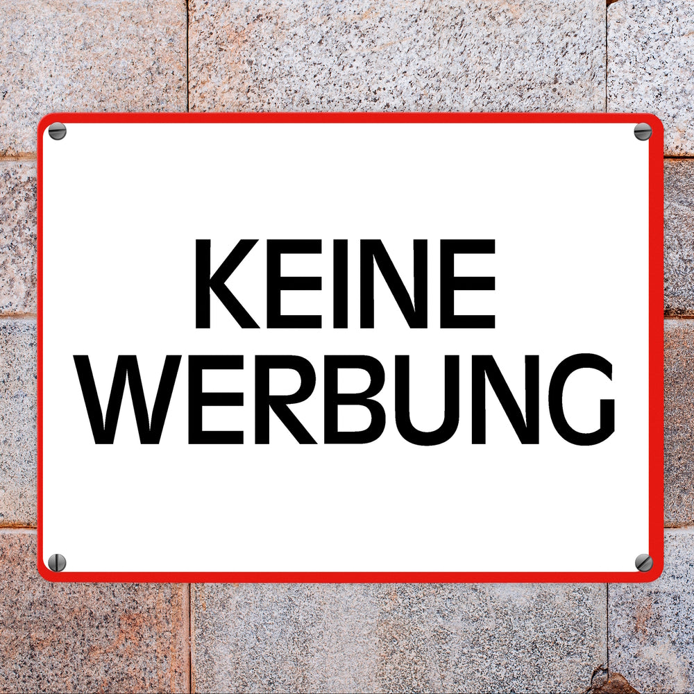 Keine Werbung Warn- und Hinweisschild im Used-Look