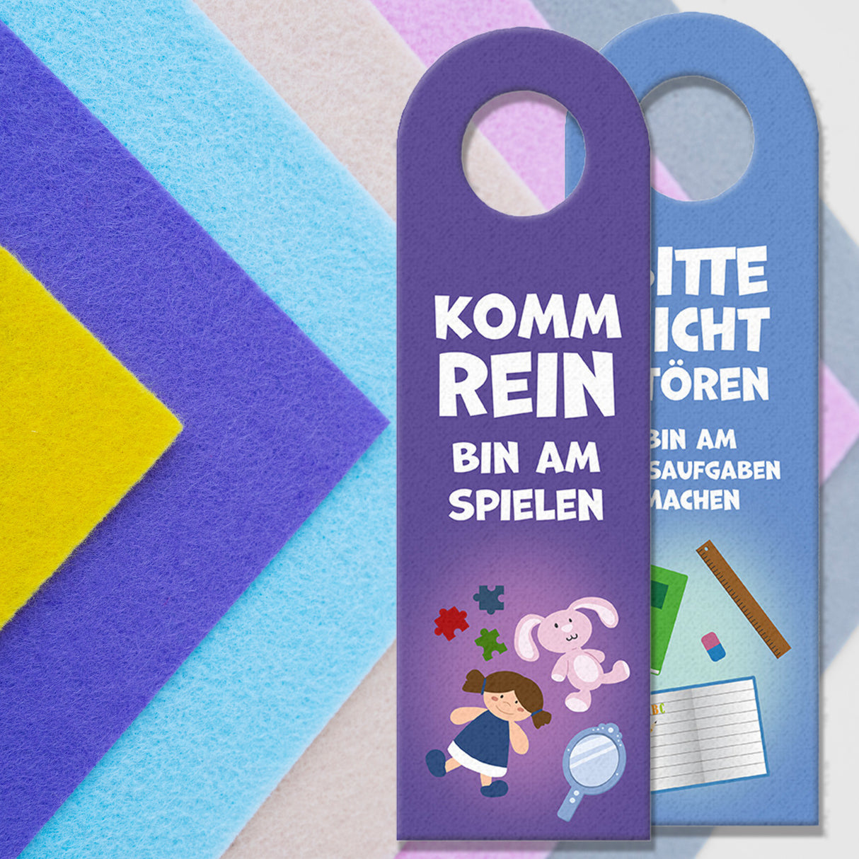- Einzeln erhältlich oder als 3er- und 10er-Sparset. Aus hochwertigem Filz mit praktischem Loch für die Türklinke. Mit Sorgfalt in Handarbeit hergestellt in unserer Türhänger-Manufaktur in Deutschland.