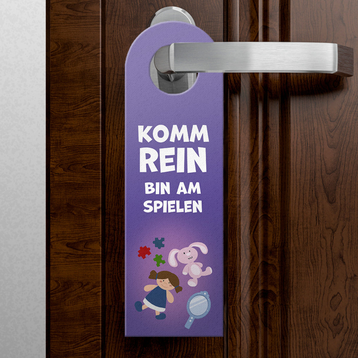- 1x Mache Hausaufgaben - Bin am Spielen Türhänger für Mädchen in der gewählten Setgröße