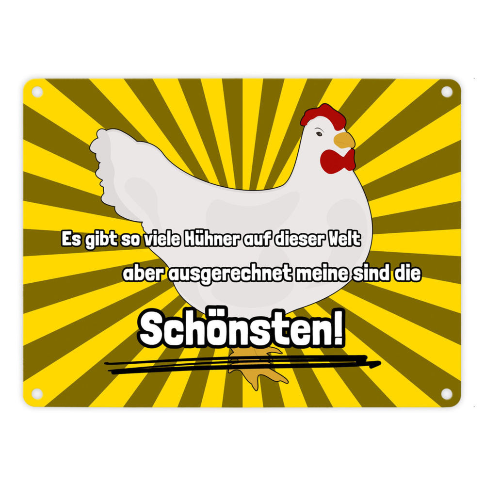 • 1x Metallschild in 15x20 cm Schönste Hühner der Welt mit Hintergrund in Vignettenoptik in der gewählten Größe