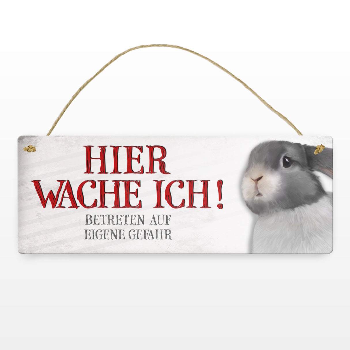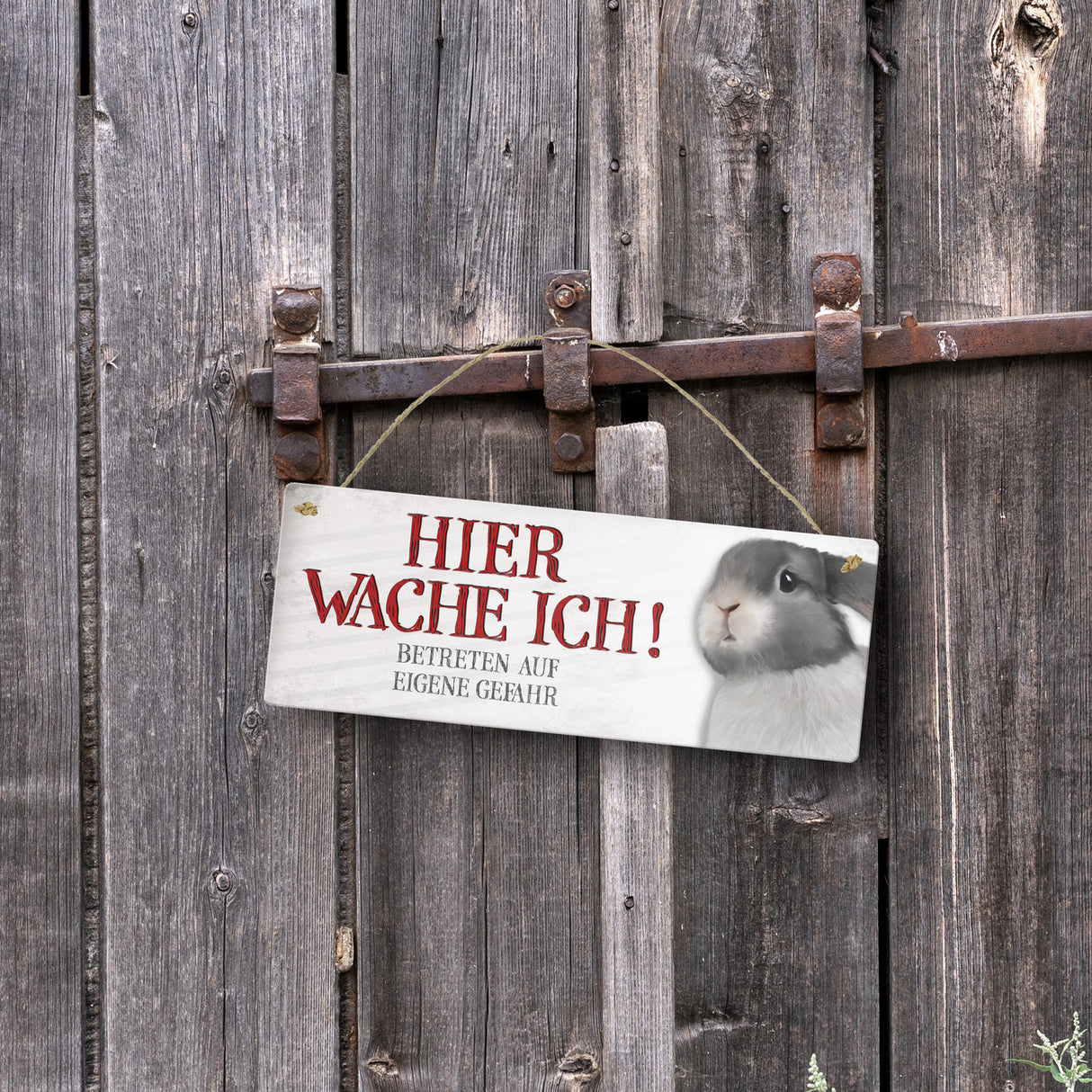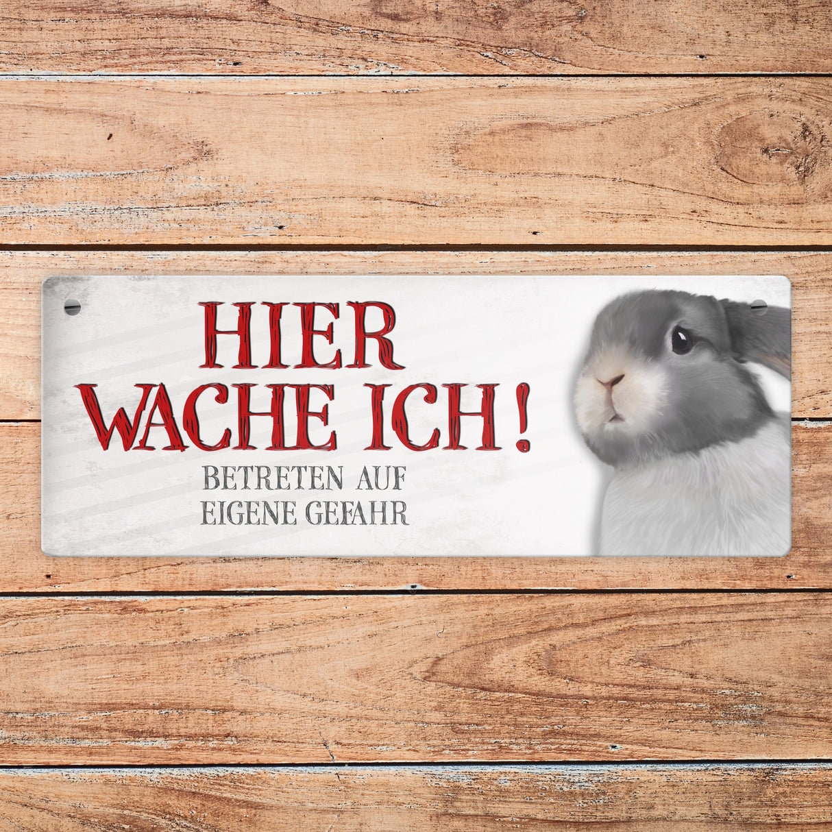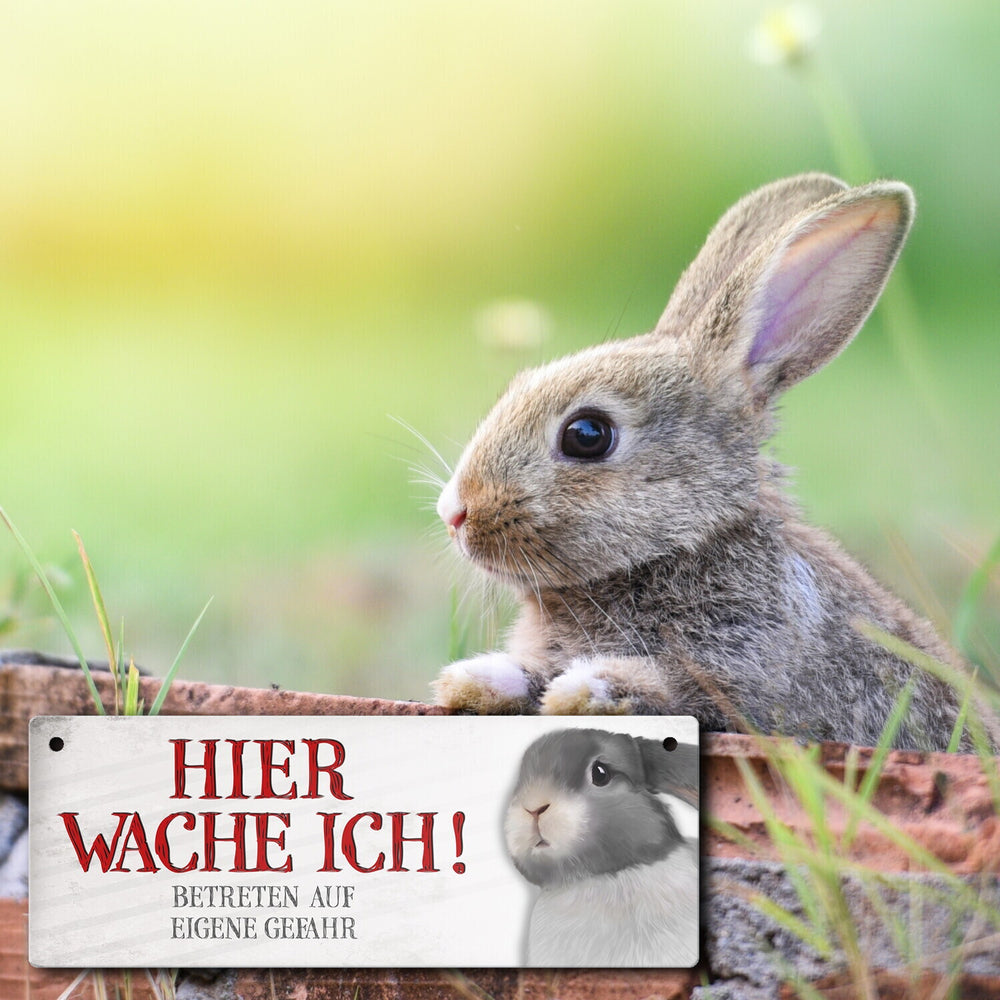Metallschild mit Hase Motiv und Spruch: Hier wachen wir!
