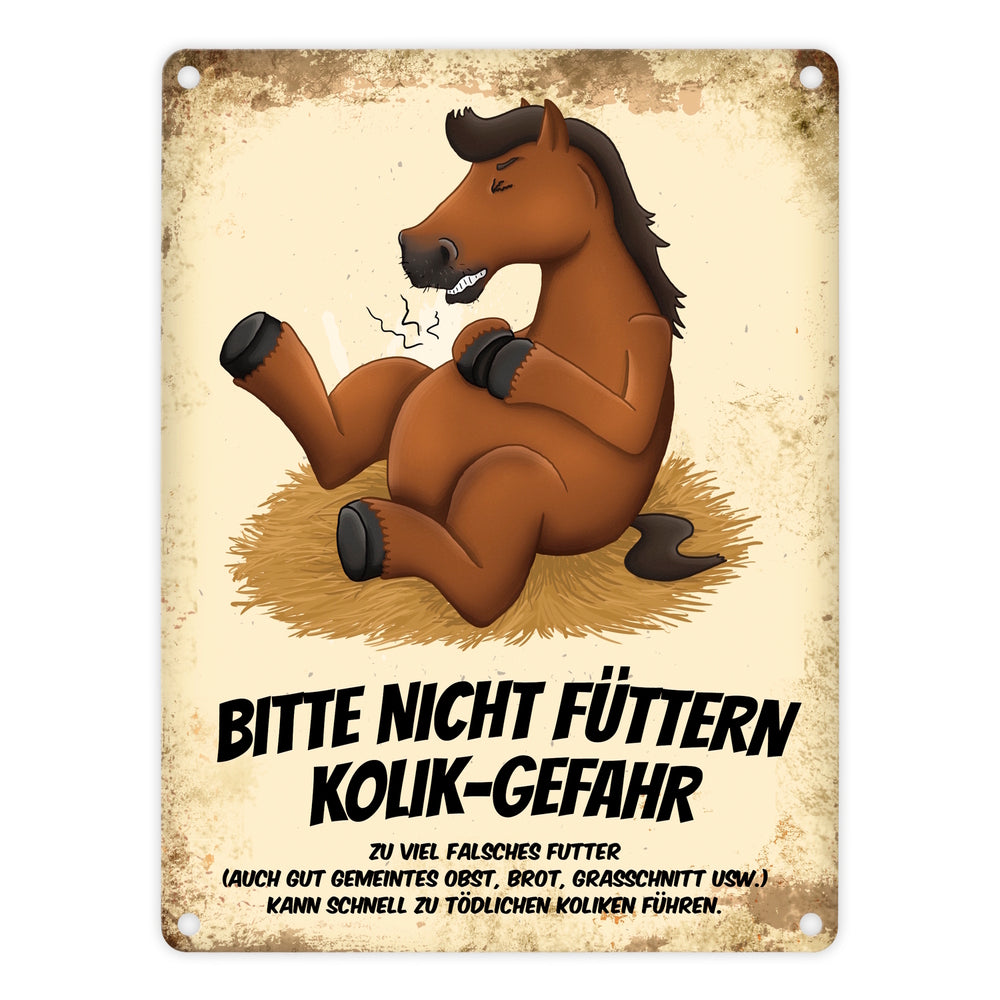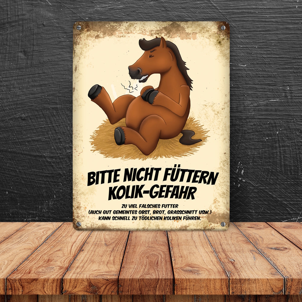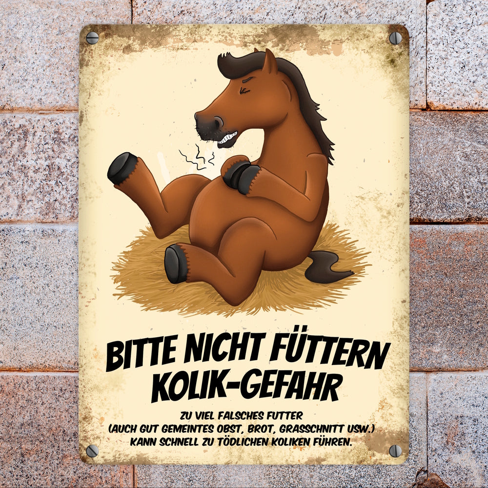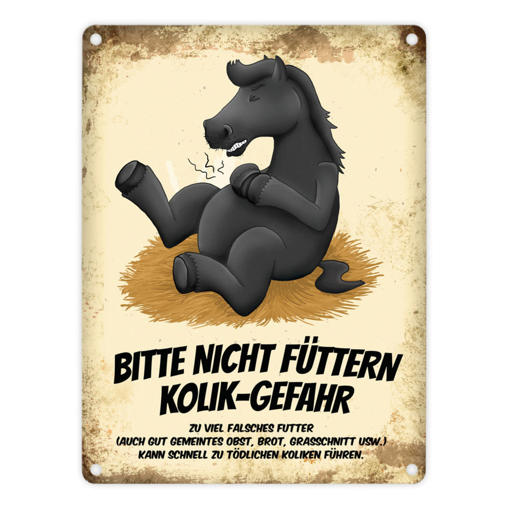 Metallschild mit Pferde Motiv und Spruch: Bitte nicht füttern - Kolik-Gefahr