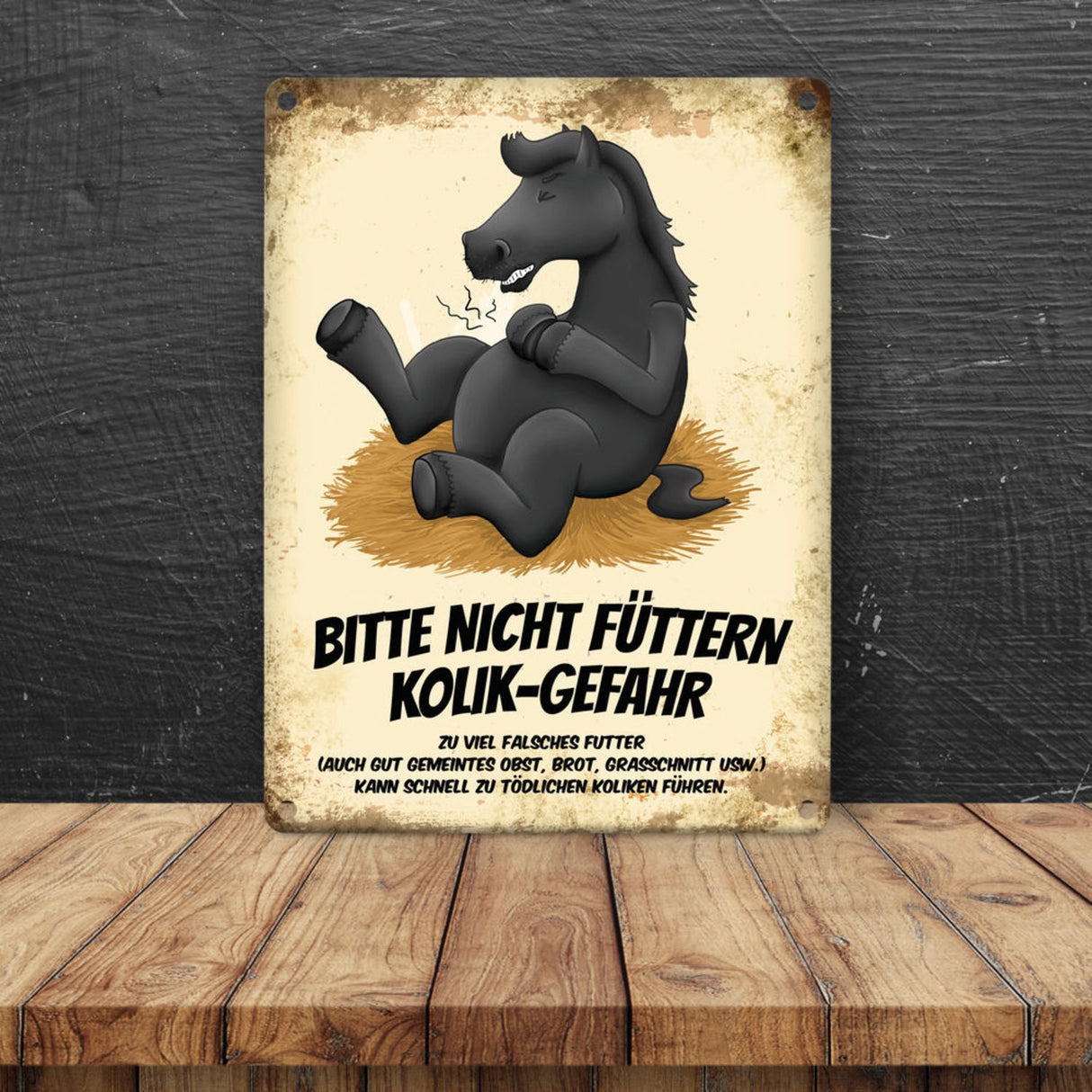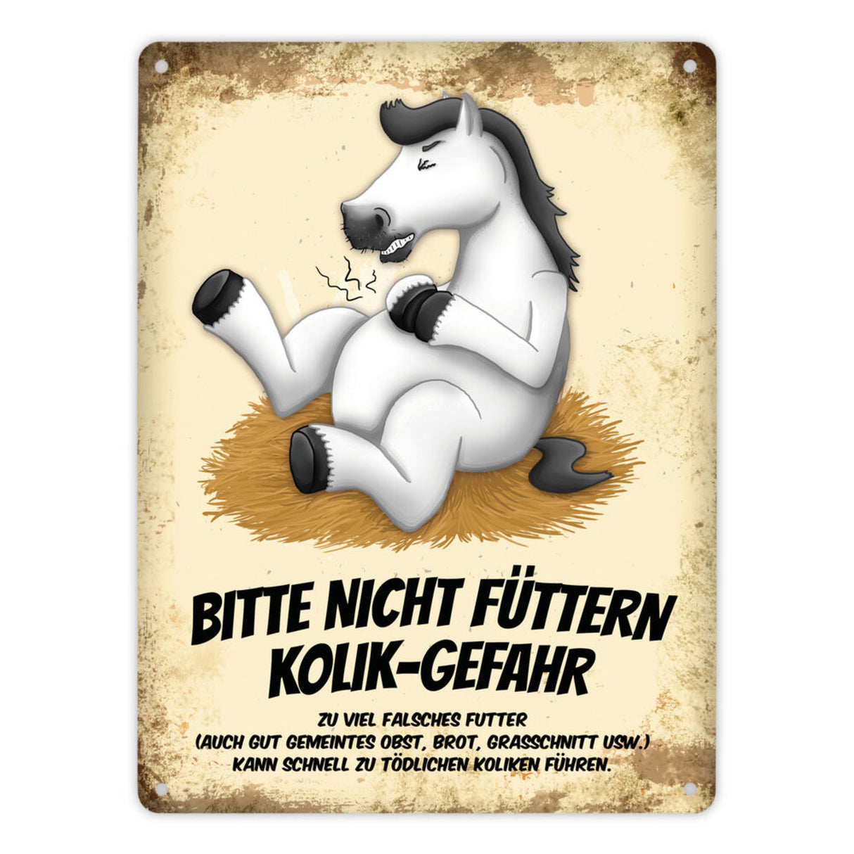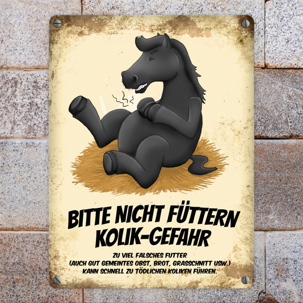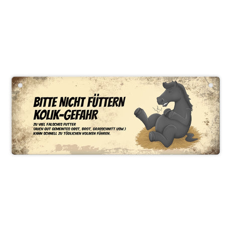 Metallschild mit Pferde Motiv und Spruch: Bitte nicht füttern - Kolik-Gefahr