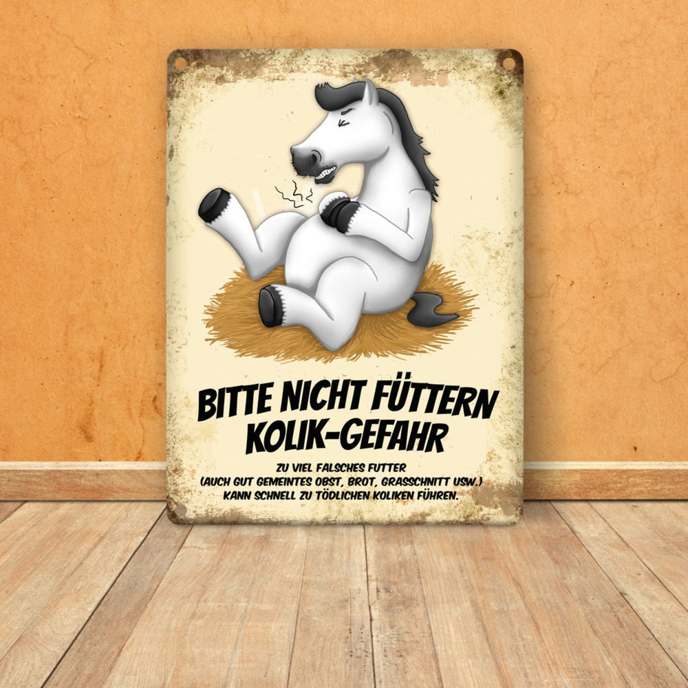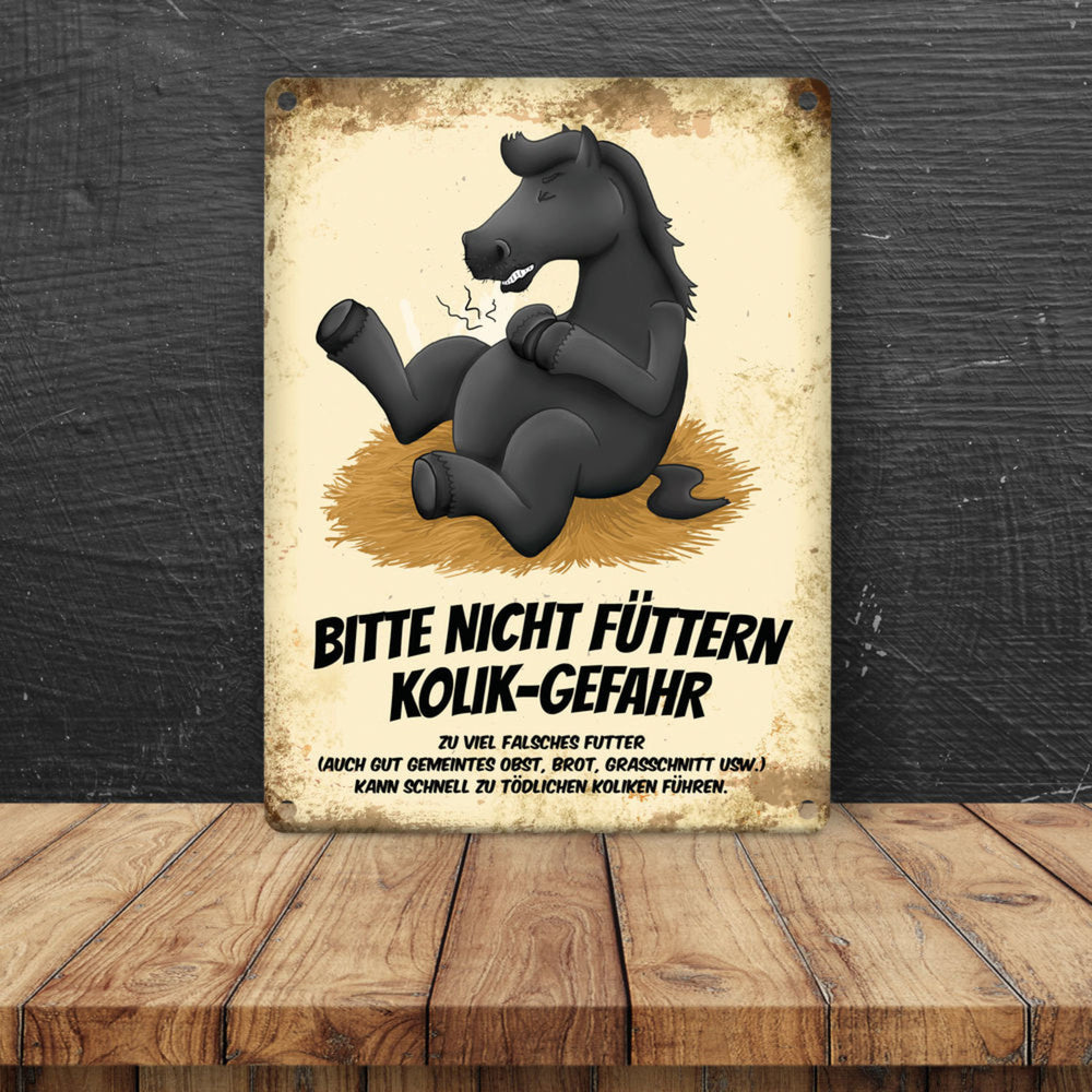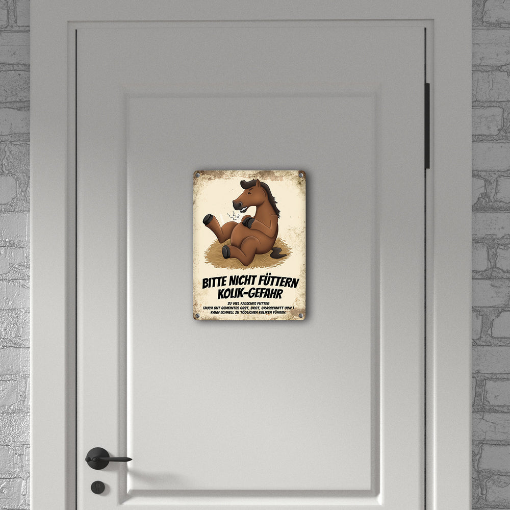 • 1x Metallschild mit Pferde Motiv und Spruch: Bitte nicht füttern - Kolik-Gefahr in der gewählten Größe