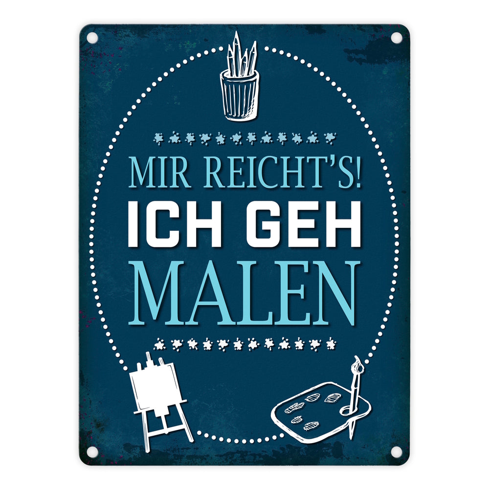 • 1x Metallschild mit Spruch: Mir reichts! Ich geh malen in der gewählten Größe