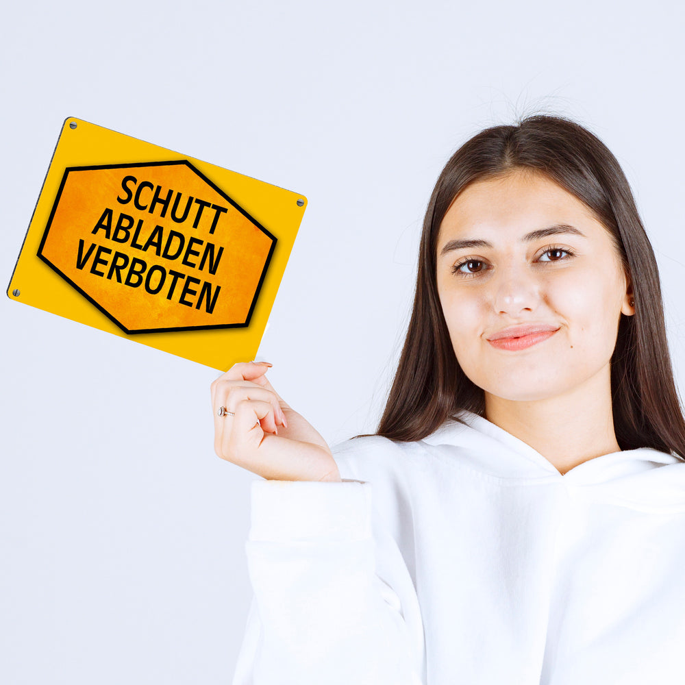- Lieferumfang: 1x Schutt abladen verboten Warn- und Hinweisschild in Gelb und Schwarz
