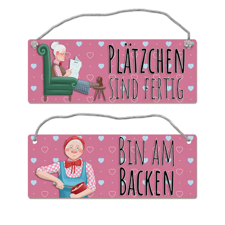 Wendeschild mit Kordel Das perfekte Gadget für alle, die gerne Backen oder viele Plätzchen zur Adventszeit backen. Mit diesem praktischen und schönen Wendeschild kannst du einfach zeigen, dass du gerade in der Küche beschäftigt bist.
