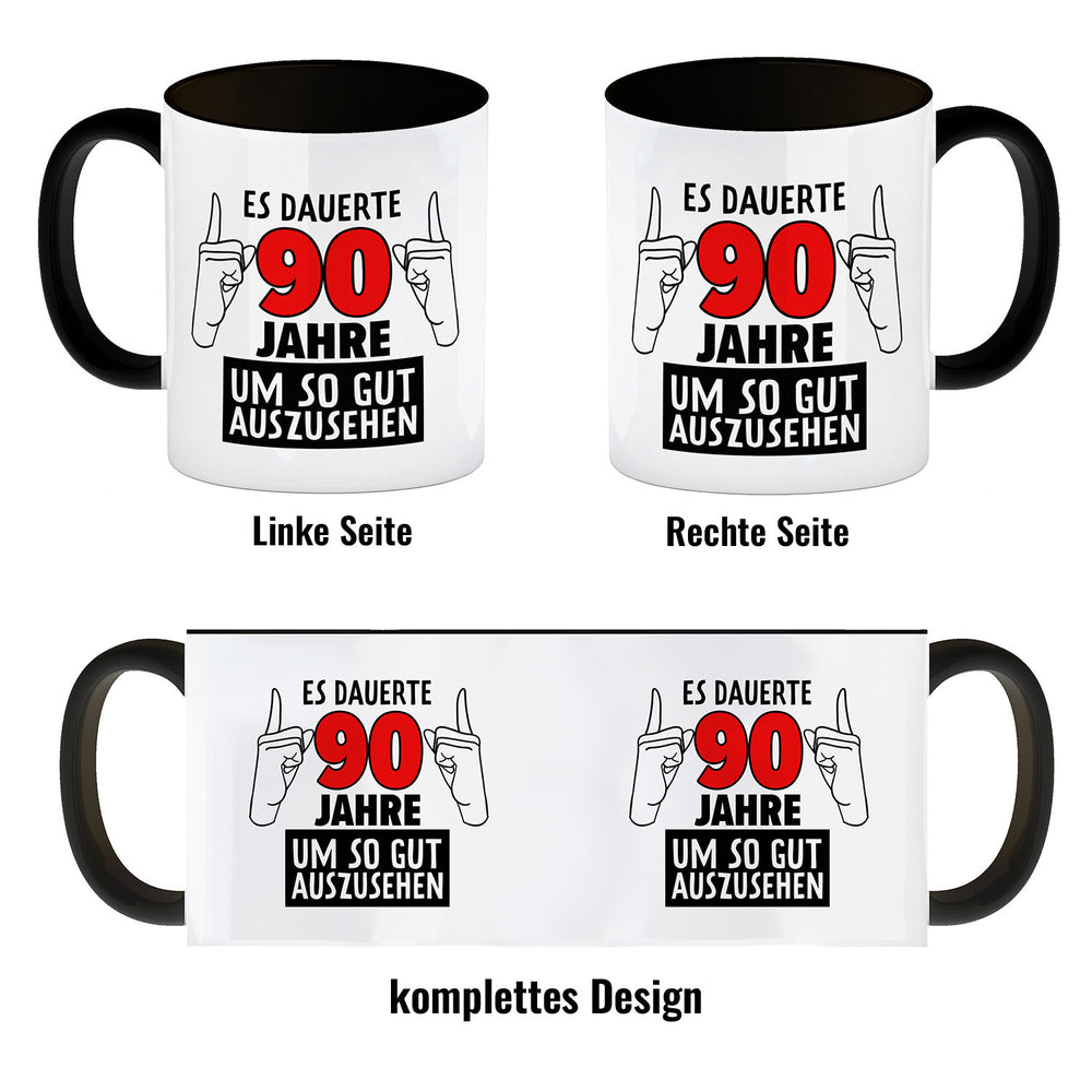 - 1x Witziger Kaffeebecher für den 90. Geburtstag mit Motiv: Gutes Aussehen in der gewählten Ausführung