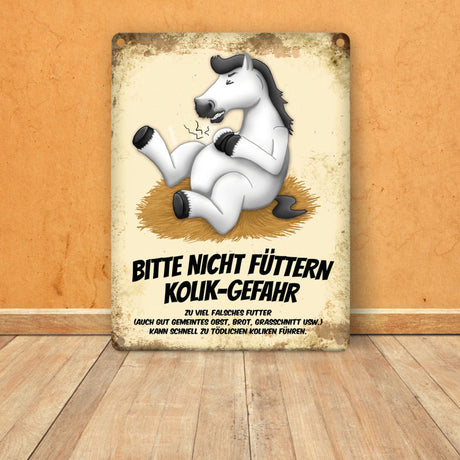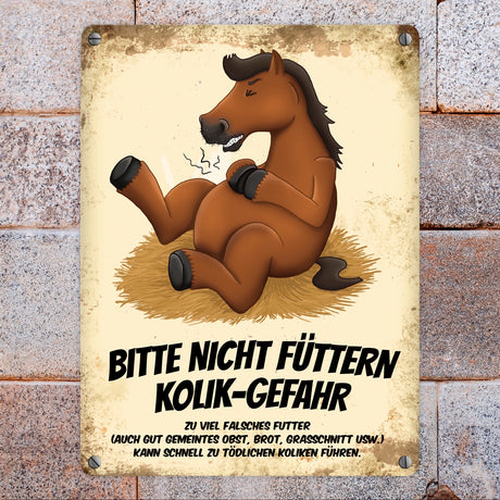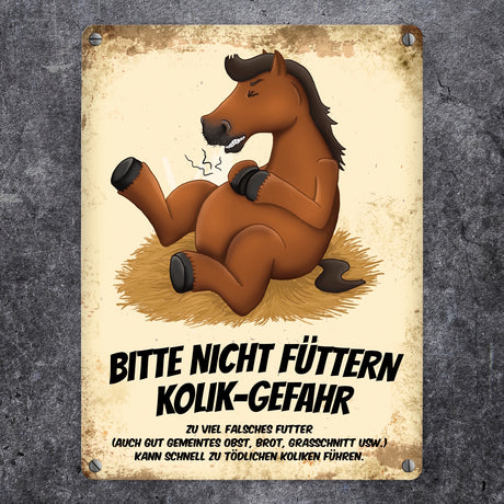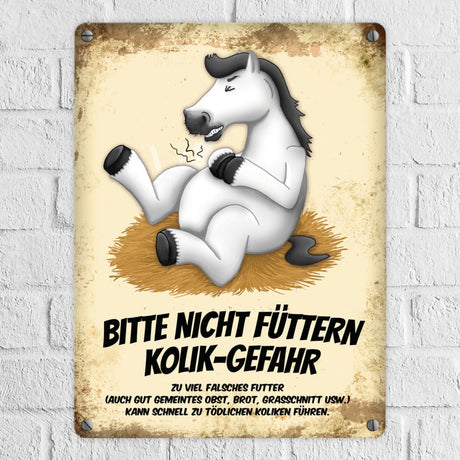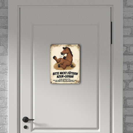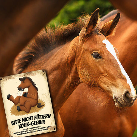 Ab €6,95Grundpreis /Nicht verfügbarAuf LagerMetallschild mit Pferde Motiv und Spruch: Bitte nicht füttern - Kolik-Gefahr