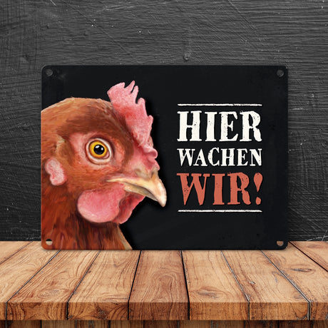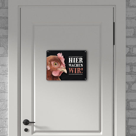 €8,95Grundpreis /Nicht verfügbarAuf LagerMetallschild mit Huhn Motiv und Spruch: Hier wachen wir!
