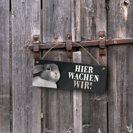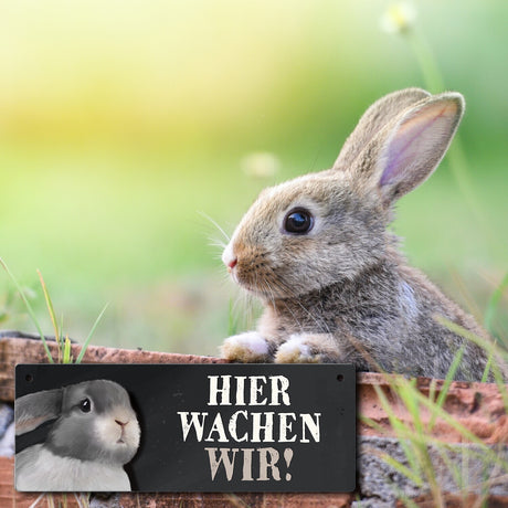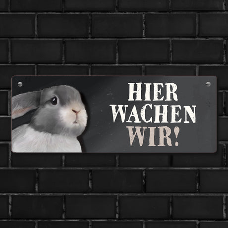 Ab €6,95Grundpreis /Nicht verfügbarAuf LagerMetallschild mit Hase Motiv und Spruch: Hier wachen wir!