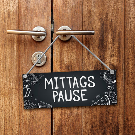 Mittagspause - In 5 Minuten wieder da Wendeschild mit Kordel