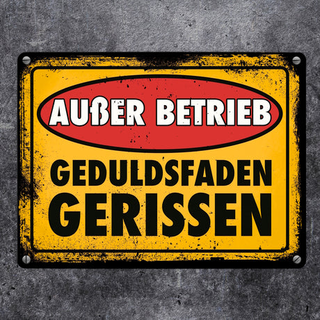 Ab €8,95Grundpreis /Nicht verfügbarAuf LagerAußer Betrieb - Geduldsfaden gerissen Metallschild im Used-Look