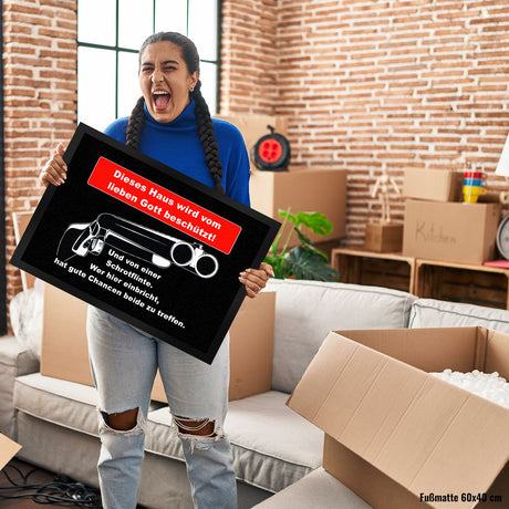 €8,95Grundpreis /Nicht verfügbarAuf LagerDieses Haus wird von Gott und einer Schrotflinte beschützt Fußmatte in 35x50 cm