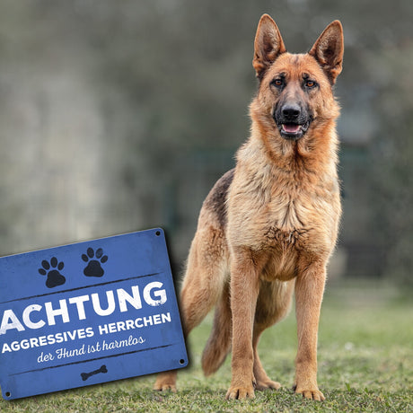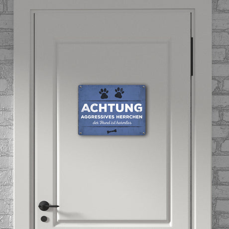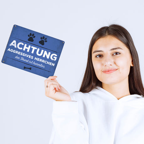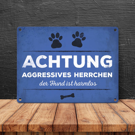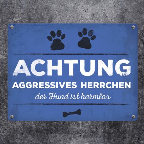 €8,95Grundpreis /Nicht verfügbarAuf LagerMetallschild mit Spruch: Aggressives Herrchen - der Hund ...