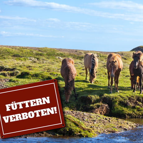 €6,95Grundpreis /Nicht verfügbarAuf LagerMetallschild mit weißem Pferd Motiv und Spruch: Bitte nicht füttern - Hufrehe