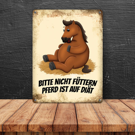€4,90Grundpreis /Nicht verfügbarAuf LagerMetallschild mit Pferde Motiv und Spruch: Bitte nicht füttern - Pferd ist auf Diät
