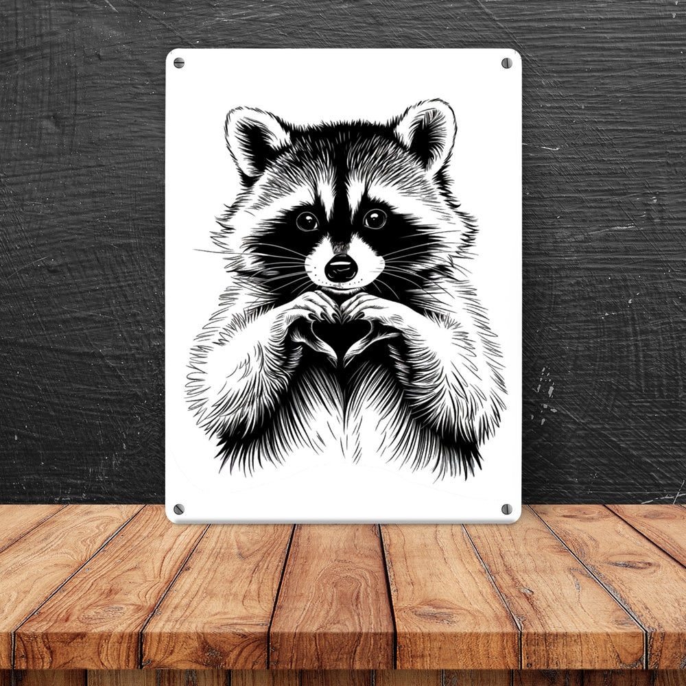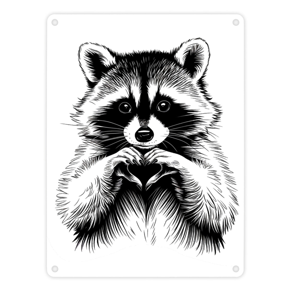 Waschbär zeigt Herz Metallschild in 15x20 cm für Tierliebhaber