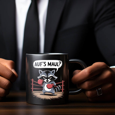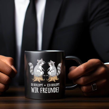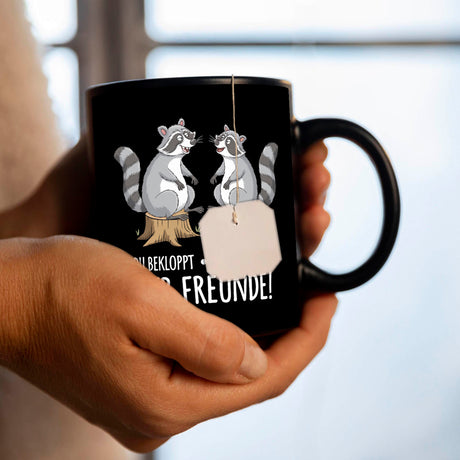 Waschbären Kaffeebecher mit Spruch Arbeit erfordert die richtigen Komplizen