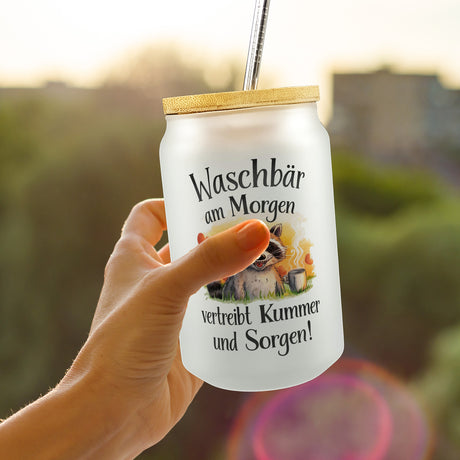 €3,95Grundpreis /Nicht verfügbarAuf LagerGlücklicher Waschbär mit Kaffee Trinkglas mit Bambusdeckel Waschbär am Morgen