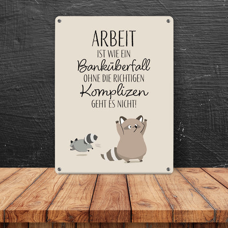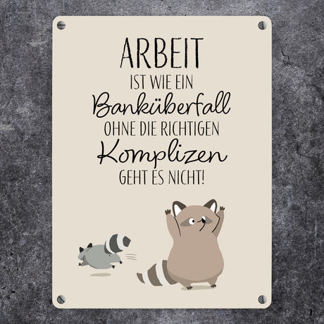 Ab €12,95Grundpreis /Nicht verfügbarAuf LagerWaschbären Metallschild in 15x20 cm mit Spruch Arbeit erfordert die richtigen Komplizen