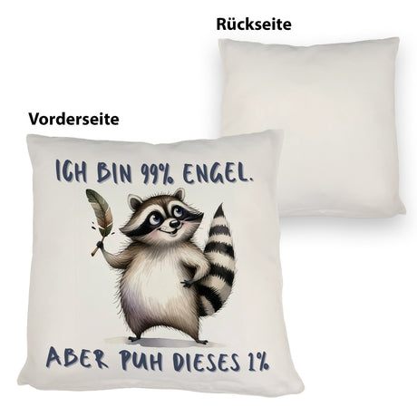 Ab €12,95Grundpreis /Nicht verfügbarAuf LagerWaschbär Kissen mit Spruch Ich bin 99% Engel Aber puh dieses 1%