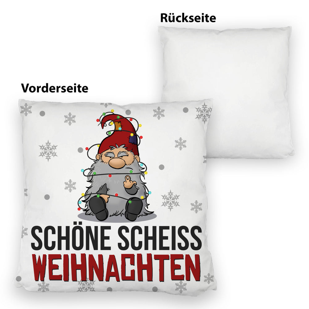 Grimmiger Wichtel Kissen mit Spruch Schöne scheiß Weihnachten
