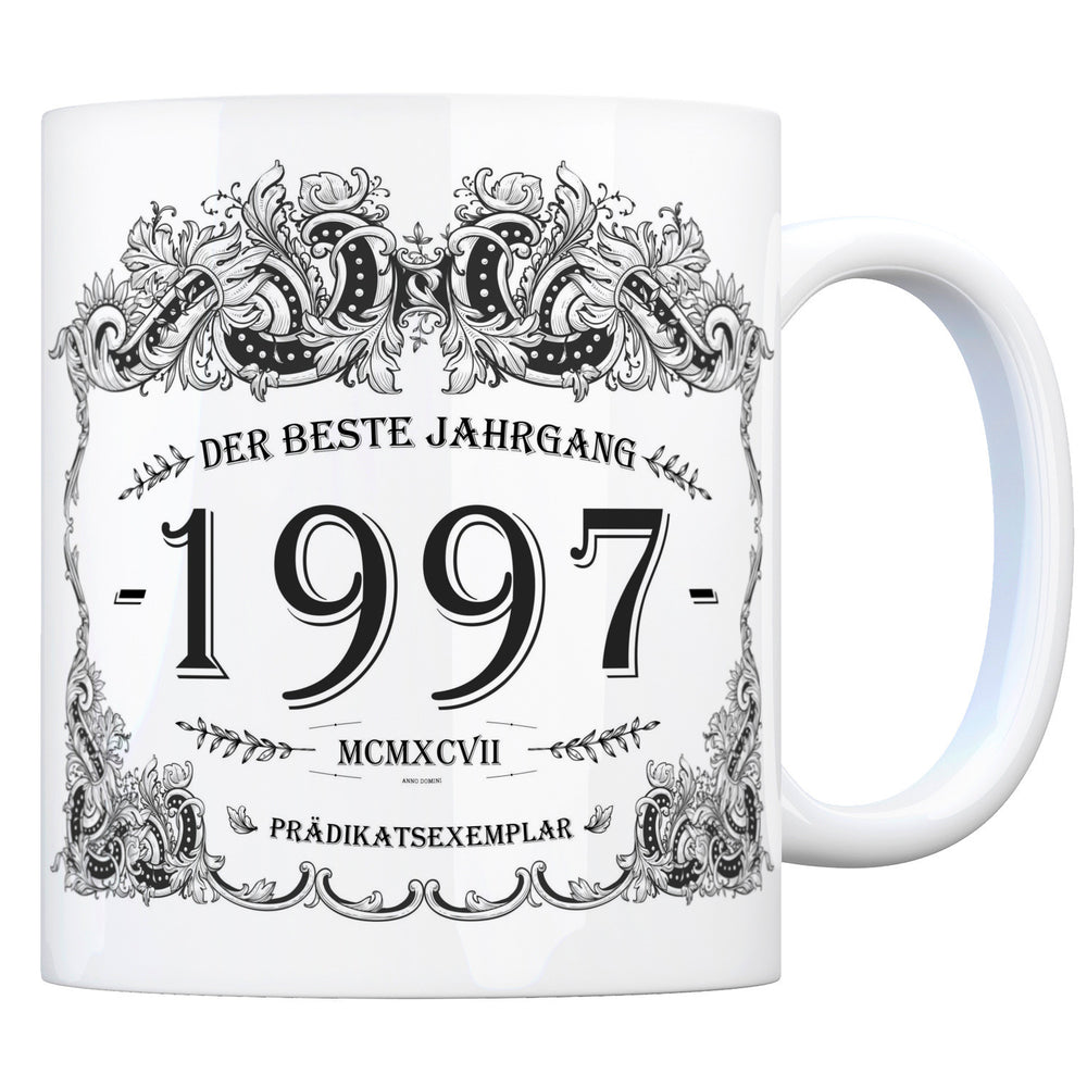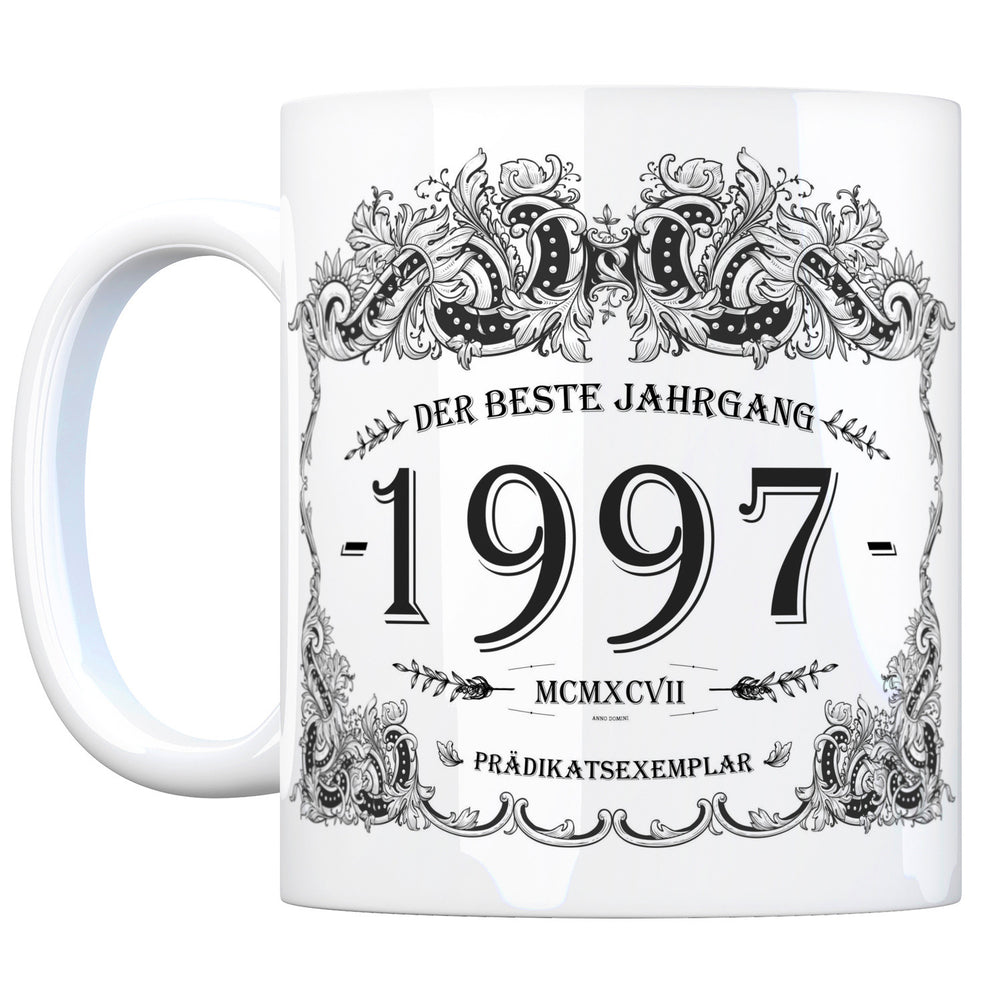 1997 ist einfach der beste Jahrgang. Aus diesem Kaffeebecher schmeckt der Morgenkaffee zeitlebens einfach am Besten! Ein tolles Geschenk zum [ber_jahrgeb]. Geburtstag Hinweise: Fassungsvermögen: ca. 300ml
