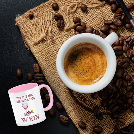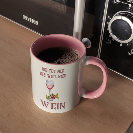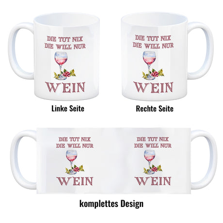 €12,95Grundpreis /Nicht verfügbarAuf LagerWein Kaffeebecher mit Spruch Die tut nix die will nur Wein