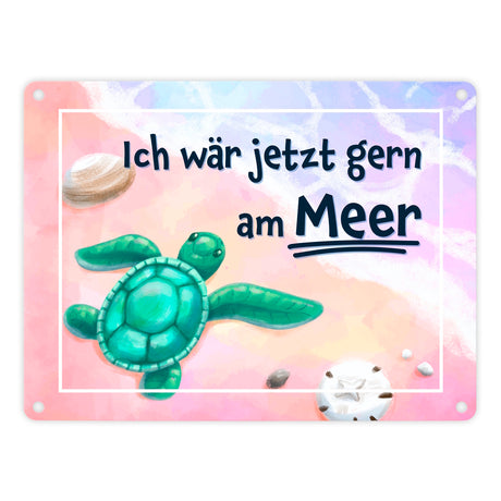 Ich wär jetzt gern am Meer Metallschild mit Schildkröten-Motiv
