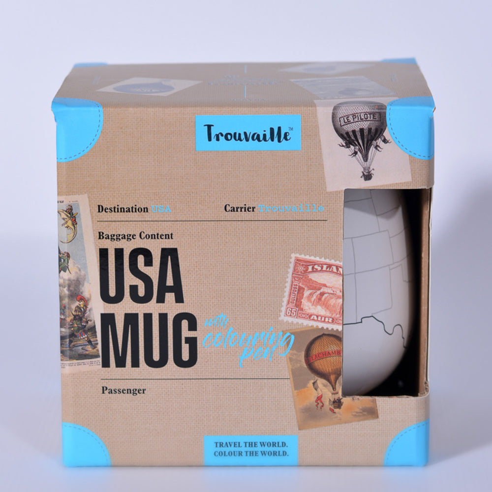 Die Trouvaille USA XL Kaffeetasse, ein geniales Geburtstagsgeschenk für jeden Weltenbummler. Material: Keramik | Für die Benutzung in der Mikrowelle geeignet. Dieses Produkt ist spülmaschinengeeignet.