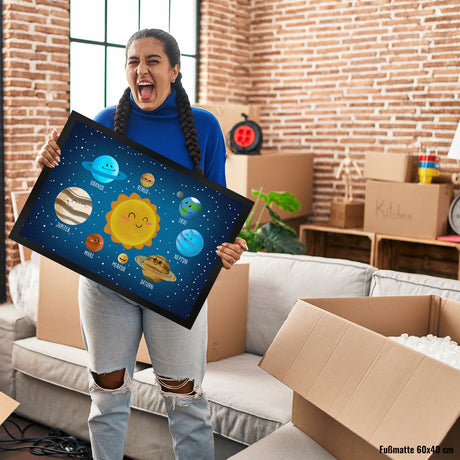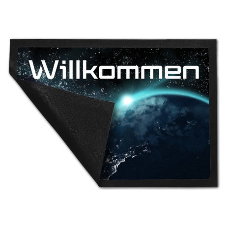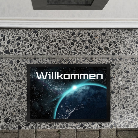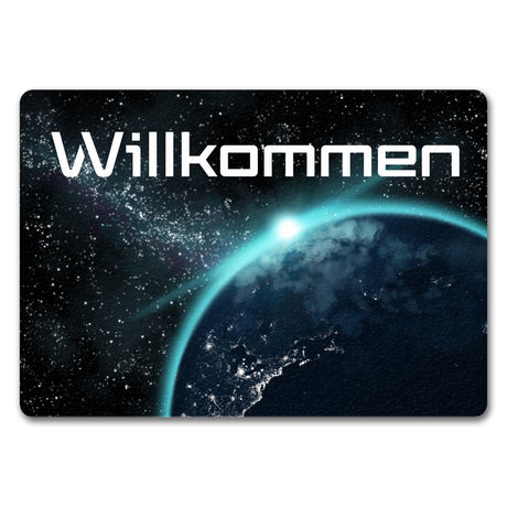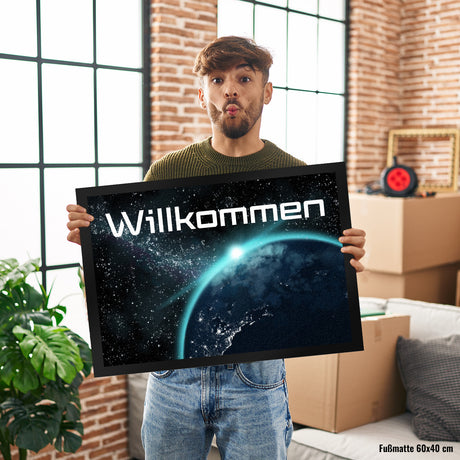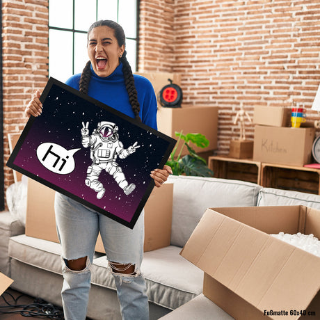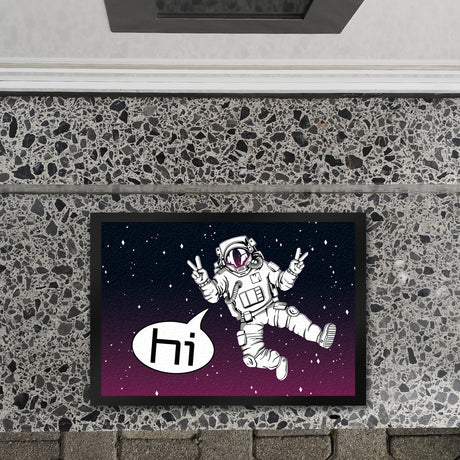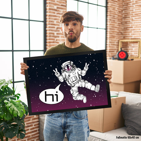 Astronaut im Weltall mit Peace-Zeichen witzige Fußmatte